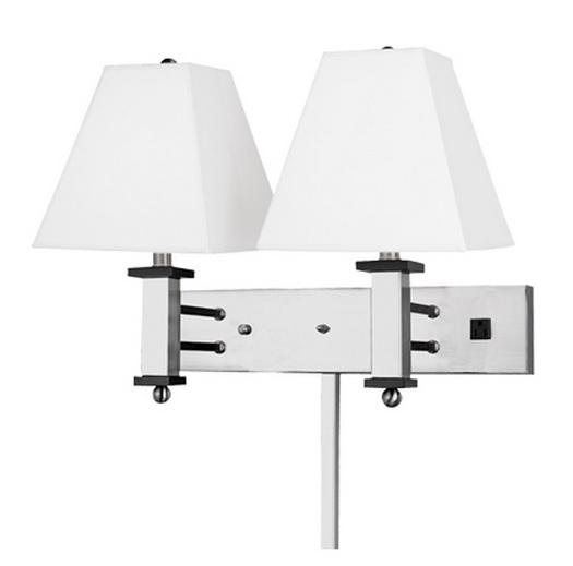 STX-551WD - Acabado Niquelado, Acentos en Ébano, Pantalla de Lino Blanco, 18" Alto x 22" Ancho.
