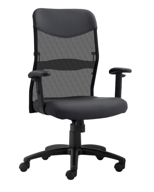 STXC420 - Brazos Ajustables, Patas de Araña, 5 Ruedas de Nylon, 39.5-43.5" Alto x 27" Ancho, Respaldo en 3 Posiciones, Malla y Vinipiel Color Negro.