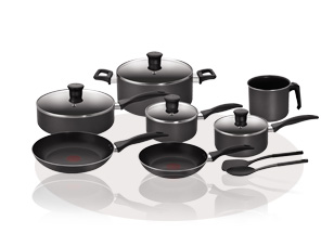 A730SA74 - BATERÍA 13 PZS FAMILY COOK, Exterior PTFE Antiadherente, Interior Resist Plus, Mangos de Baquelita, Tapas de Vidrio, Fuente de Calor: Todas menos Inducción, Negro.