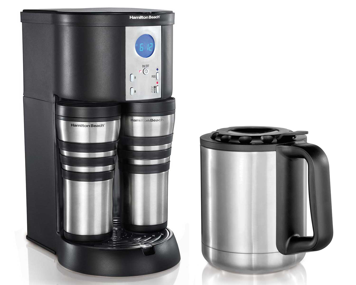 45237R - CAFETERA HAMILTON BEACH, 10 Tazas, Prepara Diferentes Tipos de Café al Mismo Tiempo, Canasta de Preparación Divisoria, Apagado Automático, Prepara Café Helado, Reloj Programable, Bandeja de Goteo, Tazas de Viaje, Jarra Térmica