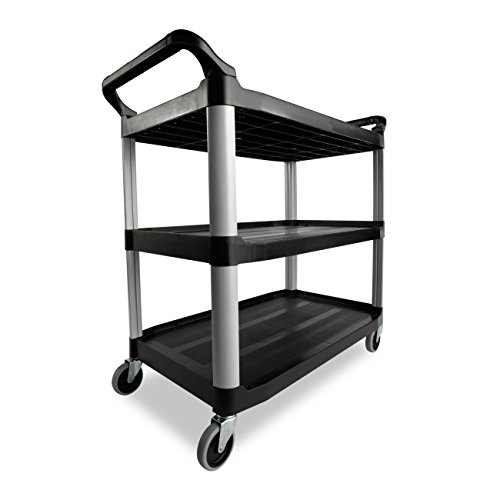 FG409100BLA - CARRO DE SERVICIO, Totalmente Abierto, 300 Lb., Postes de Aluminio, Estantes Moldeados, Ruedas Giratorias de 4", 103.2 x 50.8 x 96 cm., Negro.