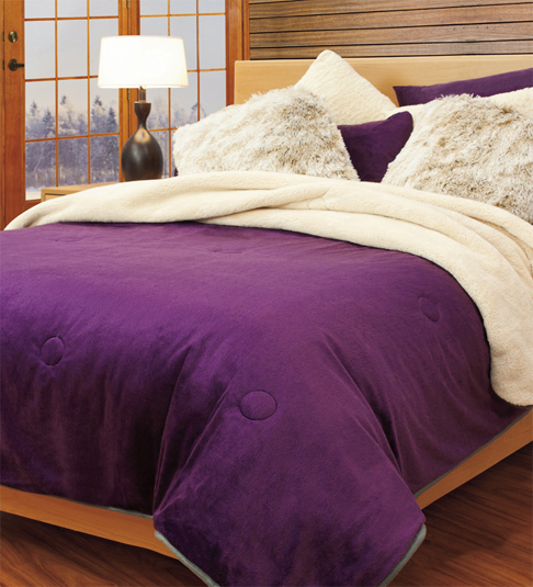 53445 - COBERTOR BÁSICO INVERNAL MORADO INDIVIDUAL / MATRIMONIAL, 100% Poliéster de Microfibra, Segunda Vista de Borrega.