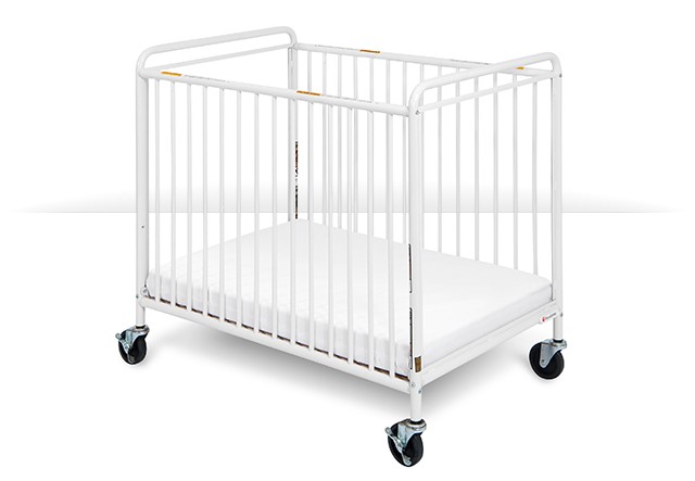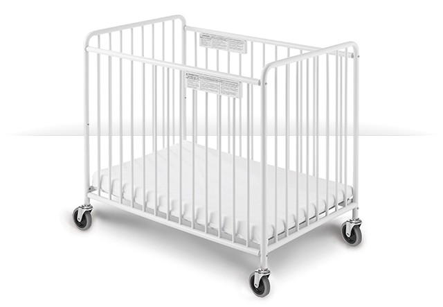 2031097 - CUNA CHELSEA, Cuna con Barrotes en Paneles Laterales, Colchón de 3”, NO Plegable, Acero Inoxidable, Tamaño Compacto, Ruedas de 4”, (Slatter), Blanco.