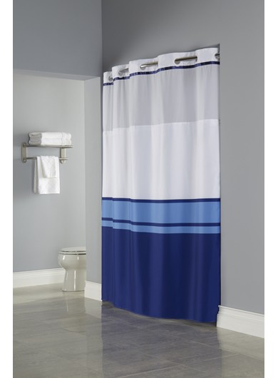 HBH49CBK01SL77 - CORTINA DE BAÑO BROOKS, 71 x 77 , Poliéster, Incluye Liner con Imanes, Ventana de Gasa, Azul.