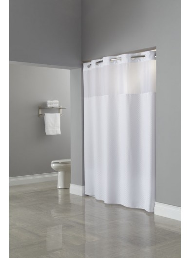 HBH72PTM0177 - CORTINA DE BAÑO DAYTONA, 71 x 77, Poliéster, Patrón Tablero de Ajedrez de 1/2", Ventana de Gasa, Imanes en Esquinas, Dobladillo Ultrasónico, Blanco.