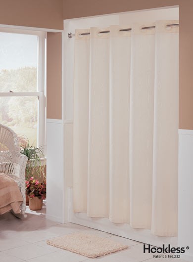 HBH01EBM05X - CORTINA DE BAÑO EMBOSSED MOIRE, 71 x 77, Poliéster, Efecto de Tono Sobre Tono, Imanes en Esquinas, Dobladillo Ultrasónico, Beige.