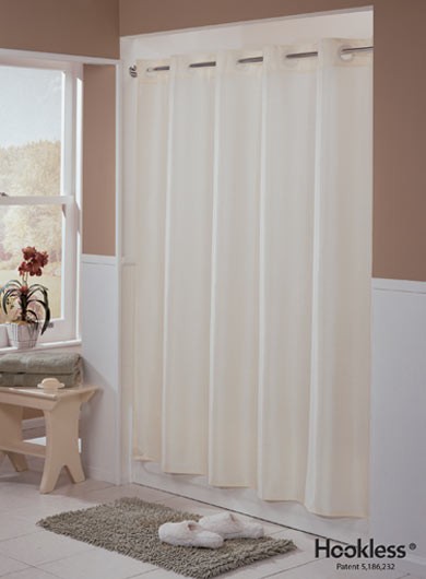 HBH44ENG05 - CORTINA DE BAÑO ENGLEWOOD, 71 x 74, Poliéster, Patrón Dobby Diamond, Imanes en las Esquinas, Dobladillo Ultrasónico, Beige.