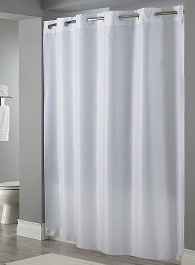 HBH44ENG01X - CORTINA DE BAÑO ENGLEWOOD, 71 x 77, Poliéster, Patrón Dobby Diamond, Imanes en las Esquinas, Dobladillo Ultrasónico, Blanco.