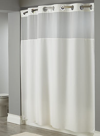 HBH49MYS01SL74 - CORTINA DE BAÑO ILLUSION, 71 x 74, Poliéster, Anillos de Cromo, Ventana Translúcida, Incluye Liner con Dobladillo Ultrasónico, Blanco.