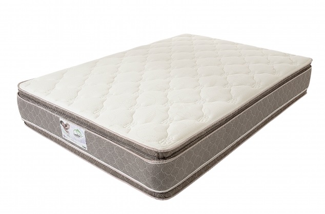 Tela de algodón, capitonado y espuma de alta densidad en las capas de contacto. Nueva apariencia en tonos oscuros. Es un modelo de doble vista, por lo cuál se recomienda volteralo cada 3 ó 4 meses.