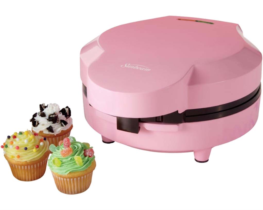 FPSBCMM901 - MÁQUINA PARA MINI CUPCAKES, Capacidad para 7 Mini Cupcakes, Manija Fácil de Levantar y Fría al Tacto, Rosa, Indicador Luminoso de Encendido, Placas con Recubrimiento Antiadherente, 900W, Patas Antiderrapantes y Frías al Tacto.