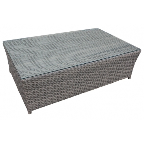 MESA AUXILIAR JACK, de Ratán Sintético Trenzado en PE de 1,4 mm de Grosor en Color Beige, con Estructura de Aluminio, Cojín con Cremallera Desenfundable, de Poliéster Color Gris.