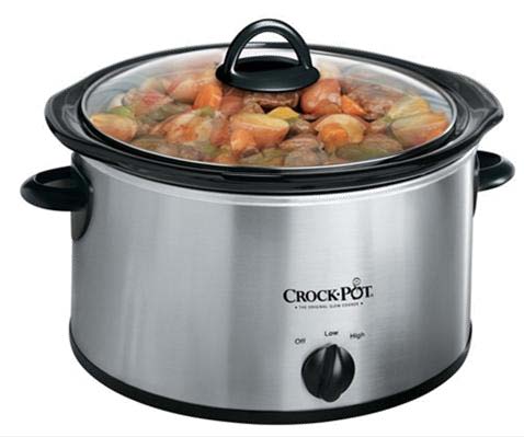 3040-BC-NP - OLLA DE LENTO COCIMIENTO, para Carnes y Frijoles, de Cerámica, 3.8 lt, Paredes Frías al Tacto, con Asas, Tapa de Vidrio, Vasija de Cerámica Removible, Control de Temperatura Apag/Low/High, en Acero con Acentos en Negro