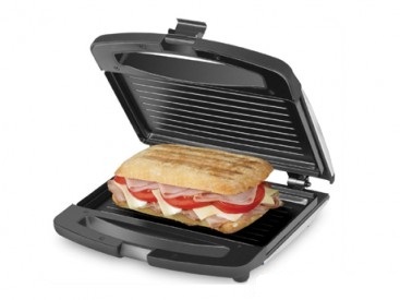 PAN1010B - PANINI TOSTADOR, Control de Temperantura, Luz de Encendido, Acero Inoxidable, Superficie Antiadherente con Rayas, sin Divisiones para Sandwich Completo, 2 Años de Garantía, Case Pack con 6 pz.