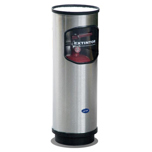 401011 - PORTA EXTINTOR CILÍNDRICO Chico con Doble Función Charola o Ceniza Peso Máximo 9 kg., 23x65, de Acero, Acabado Pulido.