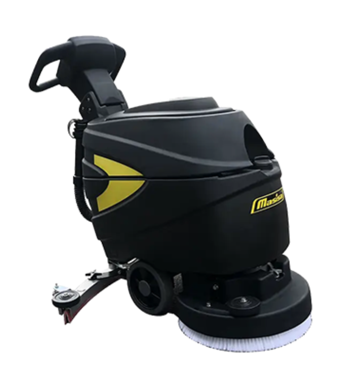 Nuestra restregadora de pisos industrial M35B cuenta con un sistema de aplicación de agua, restregado y aspirado de líquidos, dejando los pisos limpios y secos en una pasada. Lava hasta 1,500 m² por hora con autonomía por ciclo de 1.5 horas sin necesidad de cables, y puede trabajar en zonas de difícil acceso.
