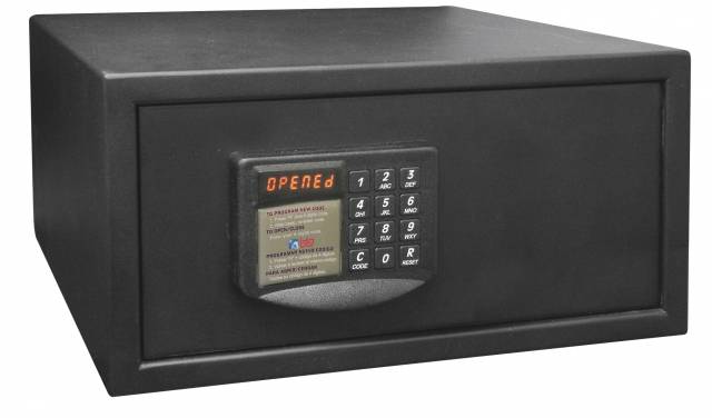 Enchufe interior que le ofrece al huésped la posibilidad de cargar un dispositivo electrónico mientras lo guarda en la caja fuerte.