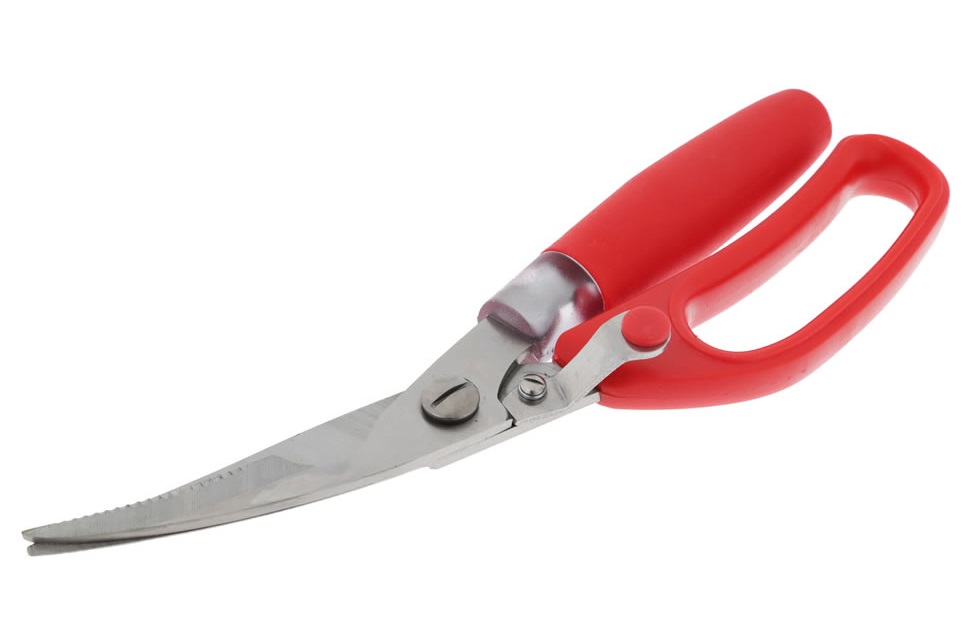K0610754 - TIJERAS PARA CORTAR CARNE, de Acero Inoxidable, con Mango de Silicón, Rojo, Case Pack con 6 pz.