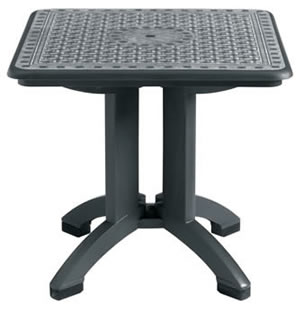 US700102 - MESA TOLEDO CUADRADA, 80 cm., Acabado de Metal, Textura de Metal, con Orificio para Sombrillas, Color Carbón (CH).