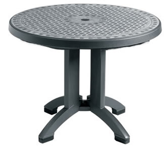 US711002 - MESA TOLEDO REDONDA, 98 cm., Acabado de Metal, Textura de Metal, con Orificio para Sombrillas, Color Carbón (CH).