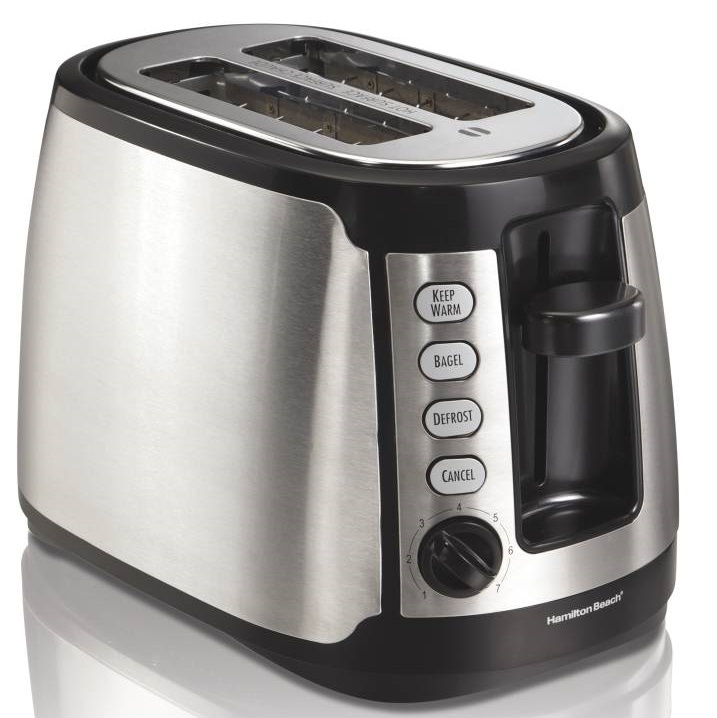 22811 - TOSTADOR Hamilton Beach para dos Rebanadas, Paredes Frías de Acero Inoxidable, Cable Retráctil Debajo de la Base, Selector de Dorado