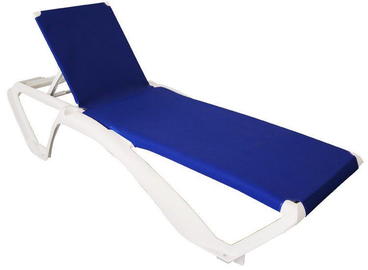 TUMBONA MARINA, Apilable, con Estructura de Polipropileno y Fibra de Vidrio, Texthilene de 1.170 g/m2 (Trama y Urdimbre Doble Hilo), Protección U.V., Ruedas en Patas Traseras y Tacos Antideslizantes en las Ruedas Delanteras y Traseras, Porta Vasos, Reclinable 4 Posiciones.