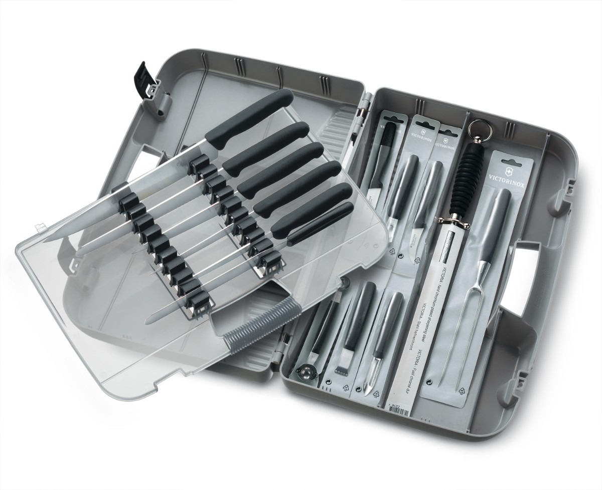 5.4903 - MALETÍN PARA CHEF, Cuchillo para Cocinero, Cuchillo Pastelero Dentado, Espatula Recta Flexible, Chaira Redonda, Cuchillo Formador, Pelapapas un solo Filo, Parisina Doble, Decorador de Limón, Rallador de Limón, Cuchillo para Verdura Puntiagudo, Cuchillo Deshuesador, Cuchillo Filetero Flexible, Tenedor para Trinchar, Cuchillo para Cocinero.