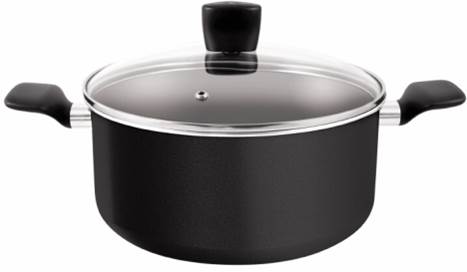 A2303382 - CACEROLA 26 CM JUST, Thermospot 4, Exterior PTFE, Interior Resistium, Fondo para Estufa de Gas, 26 cm, Tapa de Cristal, Negro, Case Pack con 6 pz.