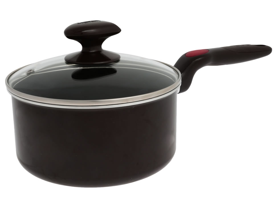 D8212222 - CAZO 16 + TAPA COMFORT TOUCH CHOCOLAT INTEGRAL, Esmalte Vitrificado, Interior Intensium de 3 mm, Mango Baquelita y Tapa de Vidrio, Case Pack con 4 pz.